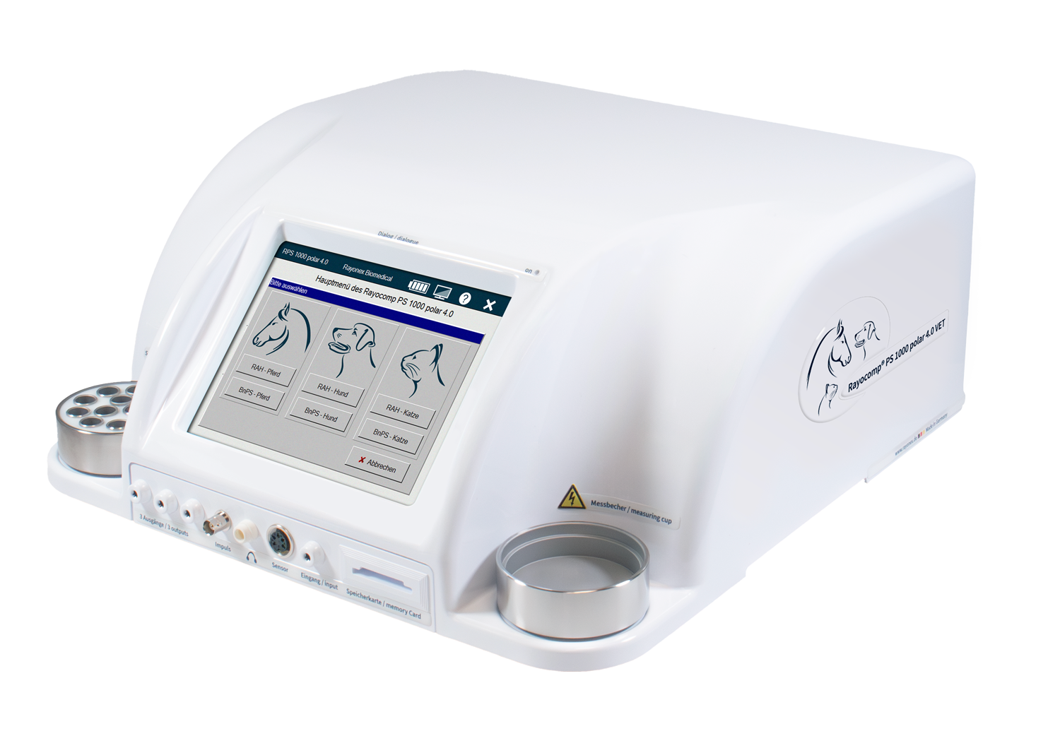 Rayocomp PS 1000 Polar 4.0 VET ile, Paul Schmidt’e göre biorezonansın veteriner kliniklerinde sabit kullanımı için yüksek kaliteli bir biorezonans cihazı geliştirdik. Bu cihaz, ihtiyaçlarınıza göre yazılım modülleri ekleyebileceğiniz bir temel modelden oluşur. Bu modüller, Paul Schmidt’e göre biorezonans kullanarak kapsamlı bir enerjetik kontrol içerir ve hayvanın mevcut sağlık durumuna dair genel bir bakış sağlar. Bütün sistem fizyolojilerin ve organların yanı sıra, patolojiler, bu patolojilere neden olabilecek bütün patojenler, vitamin ve mineral durumu, küçük ve büyük hayvanların psikolojisi de enerjetik olarak değerlendirilebilir. Elektromanyetik veya jeopatik stresin sebebe yönelik detaylı analizleri ile tedavi seçenekleri genişletilebilir. Enerjetik bakteri ve virüs testleri teşhisi kolaylaştırırken, yeme ve içme suyu testleri, örneğin, yem uyumluluğunu değerlendirmek veya gerektiğinde diyetetik yem ve takviyeleri test etmek için kullanılabilir.